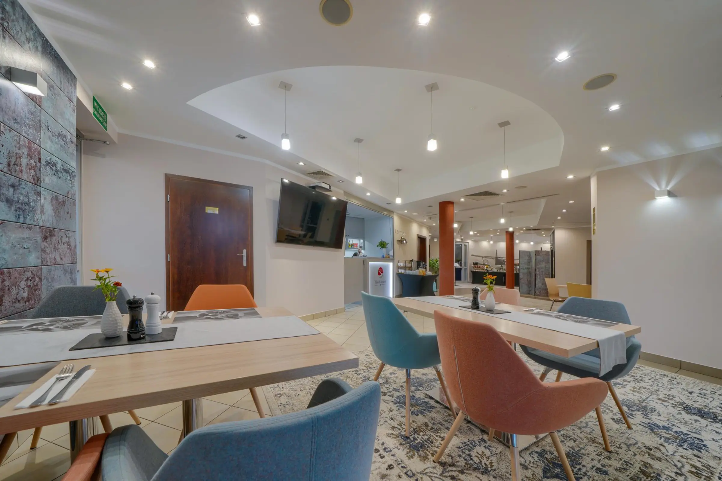 Przytulna restauracja na parterze hotelu Aviator zaprasza codziennie na śniadania, obiady i kolacje. Lokal oferuje specjały polskie i włoskie, klasyczne potrawy kuchni międzynarodowej oraz wyśmienite wina.